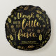 Vervollkommnen Sie für Shakespeare und literarische Fans Eigenschaften dieses Kissens das Zitat von William Shakespeare einem Traum der Hochsommer-Nacht ", obwohl sie aber wenig ist, sie ist heftiges" umgeben durch Blumen und Blätter in der Imitatgoldfolie gegen einen schwarzen Hintergrund.