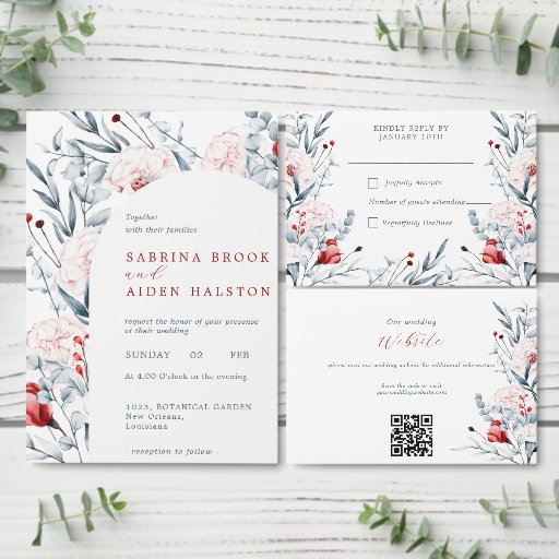 Die Rot-Blau-Hochzeitskarte RSVP zeichnet sich durch ein charmantes Design mit lebhaften Blume auf weißem Hintergrund aus. Elegante graue Äste und Blätter fügen eine raffinierte Touch hinzu. Mit der Karte können die Gäste ihre Anwesenheit und die Anzahl der Gäste angeben. Dieses Design ist ideal für Paare, die eine Mischung aus modernen und traditionellen Elementen für ihre Hochzeitsarbeit suchen.