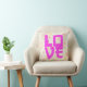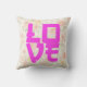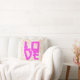 Romantisches Wurfkissen mit dem japanischen Liebe-Charakter "愛" in fett heißem Rosa über einem weichen Wasserfarbenpeony-Muster. Pastel floraler Hintergrund, feminine Cotcore ästhetische, asiatisch inspirierte Typografie. Perfekter Akzent für Schlafzimmer, Wohnzimmer, Kinderzimmer oder als Valentinstag, Hochzeit oder Jubiläumsgeschenk.