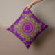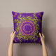 Dieses lila Kissen ist reich und regal und zeigt die Schönheit eines rosa Blumenkranzes, der von Grün umgeben ist. Ein idealer Akzent für kühne und luxuriöse Dekorstile.