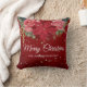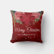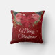 Fröhliches Weihnachtskissen - wunderschöner Blumenkranz in Aquarell, farbenfrohe Vintage Gestaltung mit roter Poinsettia, Rose, Beeren und Grünpflanzen