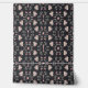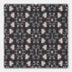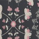 Hübsche stilisierte Blume und Äste mit kleinen Blätter in Rosa und Creme auf schwarzem Hintergrund umgeben rosa Gabel, Löffel, Tischmesser und Whiskys, um eine charmante Blumenkoche und ein Essmotiv zu machen, perfekt für die Küche, die Rückseite von Regalen, im Innern von China oder Esszimmer, oder sogar eine kulinarische Schule.