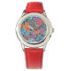 Kinderuhr aus Edelstahl mit rotem Lederarmband