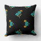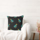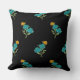 Blumenmuster Türkis Korallengrün auf schwarz Kissen