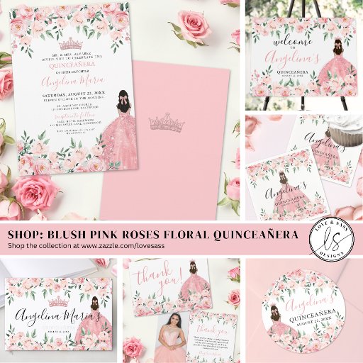 Blush Pink Floral Quinceanera 15th BirthdayDesignt von Jo P.
