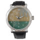 Uhr, Vintage Männeruhr mit schwarzem Lederarmband