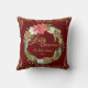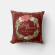 "Blumenkraut Wasserfarbe Frohe Weihnachten Red Gold Swirl Kissen werfen Kissen." Exquisite, Gold und rot bordeauxfarbene Rokoko Barocke europäische Eleganz in einem Vintagen modernen Weihnachtsstil Wohngestaltung Stil. Ein Schriftzeichen Vintages Textdesign sagt: "Frohe Weihnachten." Ein bemalter Weihnachtskranz in Aquarellfarben hat Poinsettia-Blume, weiße Blüten, rote Beeren, heilige Blätter und Blattpflanzen mit Kiefernfüßen. Alle Rechte vorbehalten, das Urheberrecht der international lizenzierten Künstlerin und Designerin Audrey Jeanne Roberts.