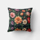 Blumenarrangements mit rosa, orangefarbenen und lila Blumen, grüne Blätter, dunkler Hintergrund, botanische Illustration, lebhafte Farben Vintager Stil.