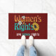 Pro Choice Haustürmatte ist im Retrostil mit dem Text "Frauenrechte sind Menschenrechte" mit blühenden und blühenden Grafiken auf dunkelrotem Hintergrund gestaltet.