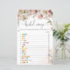 Das Rosa Blume Brautparty Emoji Pictionary Game ist ein atemberaubendes Design, das Eleganz und Eleganz ausstrahlt. Das sanfte Rosa und die lila Farbtöne der Blumenelemente schaffen eine romantische und traumhafte Atmosphäre, die perfekt zum Feiern der Braut-zu-sein ist. Das Design zeichnet sich durch eine charmante Mischung aus blumigen Illustrationen und spielerischen Emojis aus, die dem Spiel eine Touch von Laune und Spaß verleiht. Der Kontrast zwischen den zarten Blume und den kühlen und farbenfrohen Emojis schafft ein faszinierendes visuelles Gleichgewicht, das die Aufmerksamkeit der Spieler erregt und die Spannung des Spiels noch verstärkt. Die Kombination aus Skript- und serifenlosen Schriftart trägt dazu bei, ein modernes und stilvolles Design zu schaffen, das sowohl lesbar als auch optisch ansprechend ist. Antwort: 1. Stufe 2. Brautparty 3. Blumenmädchen 4. Schneide den Kuchen 5. Essen, trinken Sie Verheiratet 6. Trägerring 7. Honey Moon 8. Heiraten Sie mich? 9. Küss die Brücke 10. Erster Tanz 11. Champagner Toast 12. Bouquet Toss 13. Liebe Sie zum Mond & zurück 14. Junggeselinnen-Abschied 15. Bridezilla. Matching-Elemente verfügbar.
