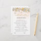 Das Design des Brautparty-Spiels ist eine atemberaubende Mischung aus Eleganz und böhmischem Charme. Die sanften, weißen und goldfarbenen Farbtöne und die blumengeschmückten Aquarelltöne schaffen eine romantische und skurrile Atmosphäre, die sich perfekt für ein boho-inspiriert Brautparty eignet. Die komplizierten Details der Rose und Blumenmuster im Design geben ein Gefühl von Luxus und Raffinesse, während die böhmischen Akzente, eine Touch von Freiheit und Kreativität. Das Gesamtbild des Designs ist bezaubernd und verträumt, sodass es eine großartige Wahl für ein böhmisches Event ist. Ob es sich um ein Gartenhotel im Freien oder eine gemütliche Ansammlung im Innenbereich handelt, das Brautparty Game Design wird das Beauty- und Ambiance-Event noch verstärken. Für eine erweiterte Anpassung dieses Designs, wählen Sie einfach die Schaltfläche "Anpassen" oben! Matching-Elemente sind verfügbar.