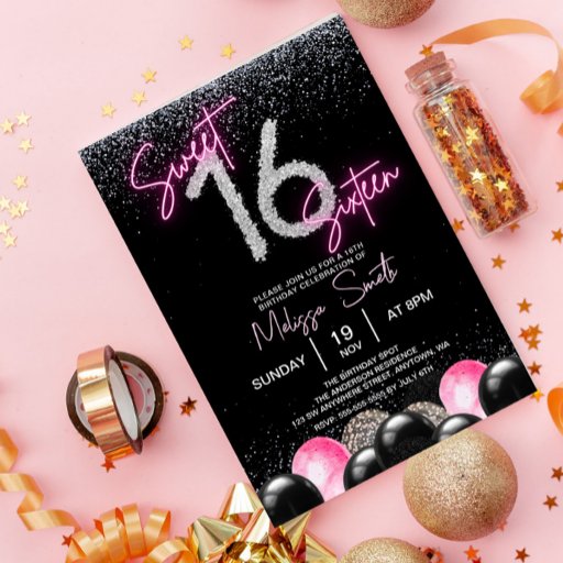 Blush Pink Ballon Diamonds Sweet 16 16 Birth Einladung