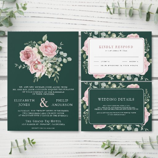 Blush Pink Floral Eucalyptus Emerald Green WeddingDesignt von Shabbir D