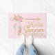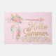 Girly rot Rosa und Gold boho Blumenfeder Hallo Sommerpferd. Diese hübsche Türmatte enthält die Worte "Hallo Sommer" in Gold, mit Gold Glitzer Glitzern Confetti. Dieser Türmchen ist auch mit einem funkelnd vergoldeten, rosa, pfirsichfarbenen, lila, lila, blauen, grünen und türkisfarbenen Boho Federpfeil ausgestattet.