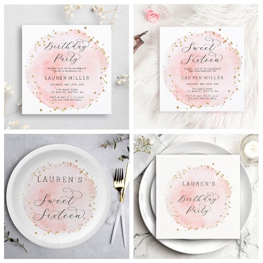 Blush Pink Gold Glitter Birthday Party CollectionDesignt von Flora