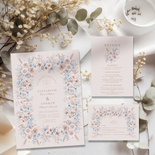 Blush Pink and Blue Watercolor Floral WeddingDesignt von Andreea Eremia
