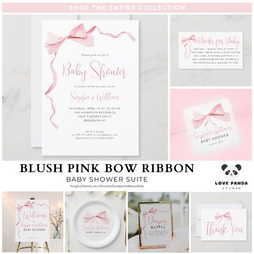 Blush Pink Watercolor Bow Ribbon Girl Babydusche Einladung