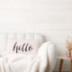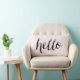 Modernes Kissen mit handgeschriebenen Schriften und Konfetti-Punkten.