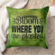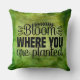 Blühen, wo Sie gepflanzt werden werfen Kissen. Grüne Kissen mit Marmorwurfkissen. Modededekoration im Garten. Sie können die Hintergrundfarbe des Kopfkissens so ändern, dass sie zu Ihrer Einrichtung passt.