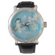 Uhr, Vintage Männeruhr mit schwarzem Lederarmband
