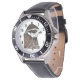 Herrenuhr aus Edelstahl mit schwarzem Lederarmband