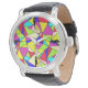 Mit dieser phantastischen Anweisungsuhr können Sie die Zeit einsparen! Da sah ich Bauhaus gefolgt von Mondrian und das kam heraus. Hoppla! Eine Wand aus hübschen, mehrfarbigen Dreiecken bildet ein atemberaubendes Uhrwerk.