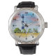 Uhr, Vintage Männeruhr mit schwarzem Lederarmband
