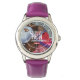 Uhr, Kinderuhr aus Edelstahluhr mit lila Lederarmband