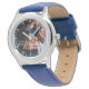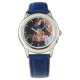 Kinderuhr aus Edelstahl mit blauem Lederarmband