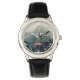 Uhr, Vintage Männeruhr mit schwarzem Lederarmband