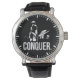 Uhr, Vintage Männeruhr mit schwarzem Lederarmband