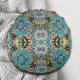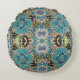 bohemian mädchenhafte silberne türkisblaue Blume Rundes Kissen