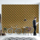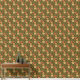 Retro-Stil Blumenmuster mit fetten, stilisierten Blume vor einem dunkeloliven grünen Hintergrund. Das Muster fühlt sich üppig und reichlich an, die Blume scheinen inmitten des dichten Blattwerks zu schweben. Der Kontrast zwischen den warmen Blume und dem coolen dunkelgrünen Hintergrund erzeugt einen auffallenden visuellen Effekt.