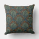 Dieses Kissen ist mit einem Jakobsfächermuster in erdgrünem Olivgrün, Rost auf marineblau für einen bohemianischen Look ausgestattet.