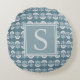 Boho Blue Floral Monogram Cushion Rundes Kissen