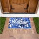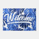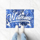 Boho Blue White Tropical Leaves Script Willkommen Fußmatte