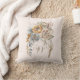 Ein Kissen mit einem hübschen Bouquet von Blume in neutralen Brauntönen, Pfirsich und Orange. Ein gefederter Träumer fügt einen eleganten mystischen Flair hinzu.