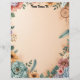 Wunderschöne Blume in Blau, Orange und Weiß mit blauen und weißen Federn und einem Träumer schaffen ein schönes boho Design auf diesem Schreibtisch aus Briefkopf. Perfekt für Ihre Korrespondenz, und kann als Newsletter oder Einladung verwendet werden.
