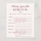 Verleihen Sie Ihrer Feier mit dieser boho-floralen "Rat für die Braut"-Karte eine bedeutungsvolle und unvergessliche Note. Entworfen mit sanften botanischen Akzenten und moderner Typografie, lädt sie die Gäste ein, ihre herzlichen Ratschläge, Wünsche und Ehe-Tipps für die zukünftige Braut zu teilen. Perfekt für Brautduschen wird diese elegante Karte zu einem Erinnerungsstück, das die Braut noch lange nach der Feier in Ehren hält und mit Liebe, Weisheit und nachdenklichen Nachrichten von Familie und Freunden gefüllt ist.