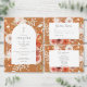 Die Hochzeitskarte zeichnet sich durch einen verbrannten orangefarbenen Rost, Pfirsichrot und cremefarbenen Rahmen aus, der durch eine salzgrüne Vegetation um einen weißen Bogen auf einem verbrannten orangen Rosthintergrund ergänzt wird. Ein Monogramm rundet das einfache, aber elegante Aussehen dieser Einladung ab. Diese Karte ist Teil der Boho Burnt Orange Fall Floral Arch Monogram Wedding Suite der Karten erstellt von Simply Farmhouse Press.