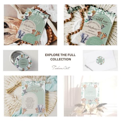 Safari Animals In Sage Green Baby ShowerDesignt von Tsikona M