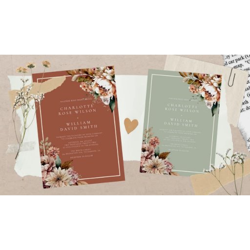 Boho Chic Watercolor Blume Fall Brautparty Foil Einladung