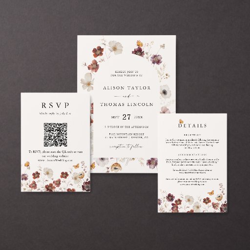 Boho Fall Florals Butterfly Wedding RSVP