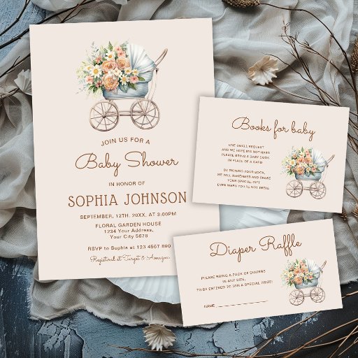 Boho Floral Vintage Baby Carriage Baby ShowerDesignt von Svetlana Kovalenya