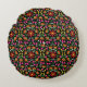 Boho Floral Orange Pink Black Green Rundes Kissen