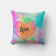 Mehrere Ebenen von Texturen und Fotografien wurden digital zusammengeführt, um diesen farbenfrohen Ausdruck von Liebe zu schaffen. Die Farbtöne Rosa, Kalkgrün, Gelb, Rot, Orange, lila, Blau, Aqua, Türkis und vieles mehr. Das Bild wird auf der Rückseite umgekehrt, sodass diese Kissen perfekt zu beiden Enden eines Sofas gehen. Der Text und Schriftart können bearbeitet werden, um Ihre Bedürfnisse zu Anzug.