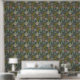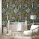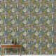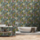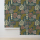 Feines Bohblattmuster und Linienmuster in erdgrüner Schale und Tapeten-Knüppel.