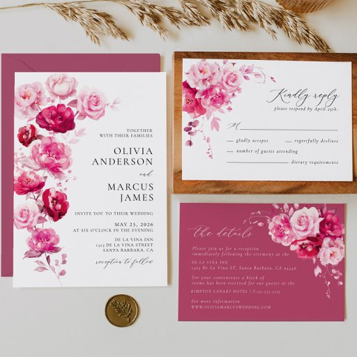 Magenta Hot Pink Rose Floral Wedding CollectionDesignt von Leah H