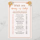Dieses Retro Mommy oder Daddy Baby Shower Guessing Game ist immer ein Hit. Dieses Design eignet sich perfekt für ein geschlechtsneutrales Thema mit bohischer Ästhetik mit modernen Blumenmustern aus dem 20. Jahrhundert und groovy Typografie. Dieses "Hallo Baby" Duschthema ist lustig und trendig mit einem Hauch von Eleganz. Retrofarben, boho-Farben und modern ein Spin! Teil der Gender Neutral Retro Boho Floral Baby Shower Kollektion. Machen Sie diese einzigartigen Babyduschen-Einladungen, die Dekoration des Party und das Geschirr zu sich selbst, indem Sie auf "Personalisieren" klicken.