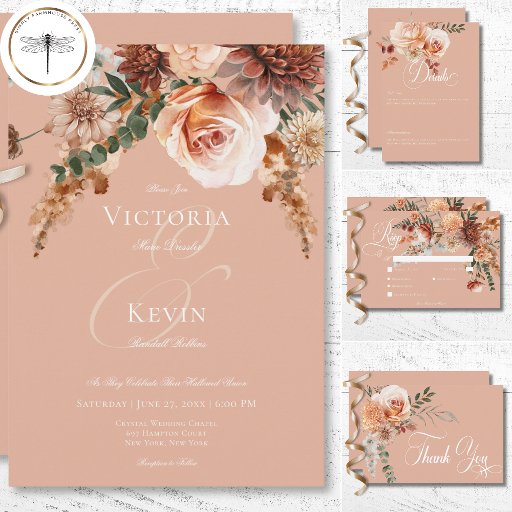 Boho Peach & Rust Floral Peach Blush WeddingDesignt von Kathe Santillo